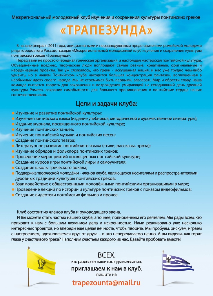 МЕЖРЕГИОНАЛЬНЫЙ МОЛОДЁЖНЫЙ КЛУБ ИЗУЧЕНИЯ И СОХРАНЕНИЯ КУЛЬТУРЫ ПОНТИЙСКИХ ГРЕКОВ